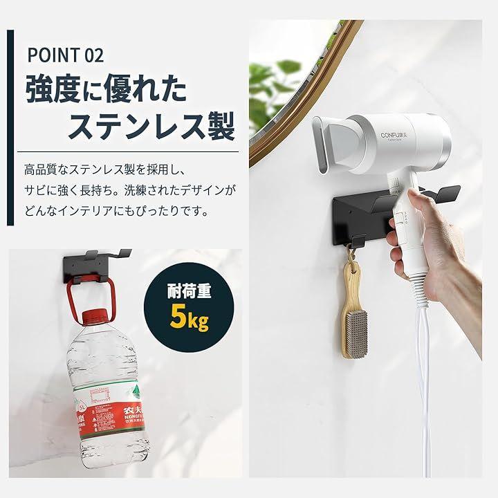 壁面にすっきり収納:壁掛け式でスタイリッシュなドライヤーホルダー。