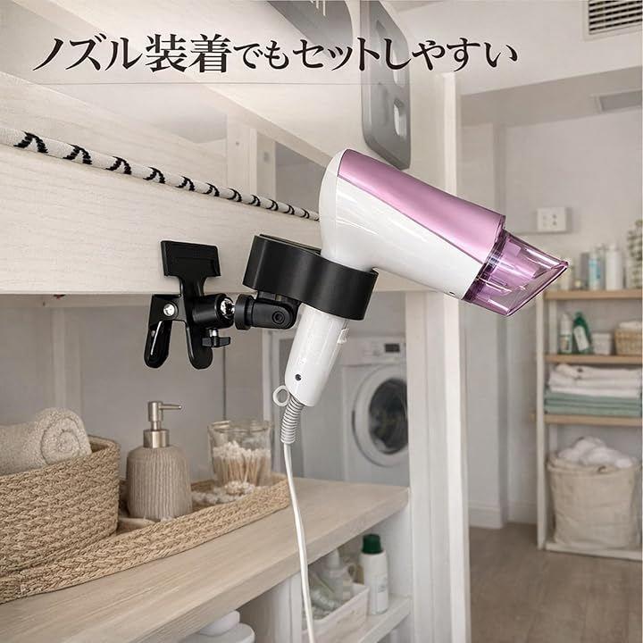 ドライヤー以外にも、卓上ファンやマイクなどの固定にも使えますので、オンライン会議や配信環境づくりなど、デスク周りの整理にも役立ちます。