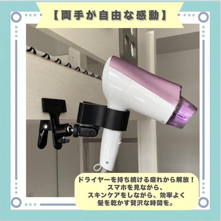 「両手が自由な感動」スマホを見ながら、スキンケアをしながら、効率よく髪を乾かす贅沢な時間を。
