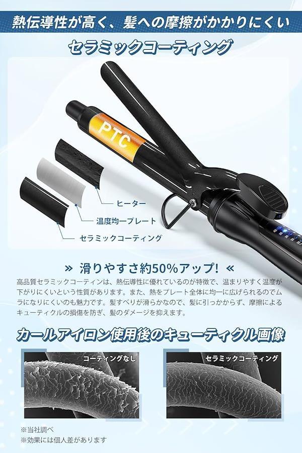 「セラミックコーティング加工」髪にやさしく素早く熱を伝えるセラミックコーティング使用しているから立ち上がりが速い。髪との摩擦が少なく、滑りがなめらか。