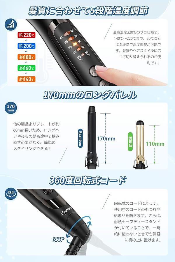 (3)170mmロングバレルは、ロングの人や毛量が多い人も巻きやすい。