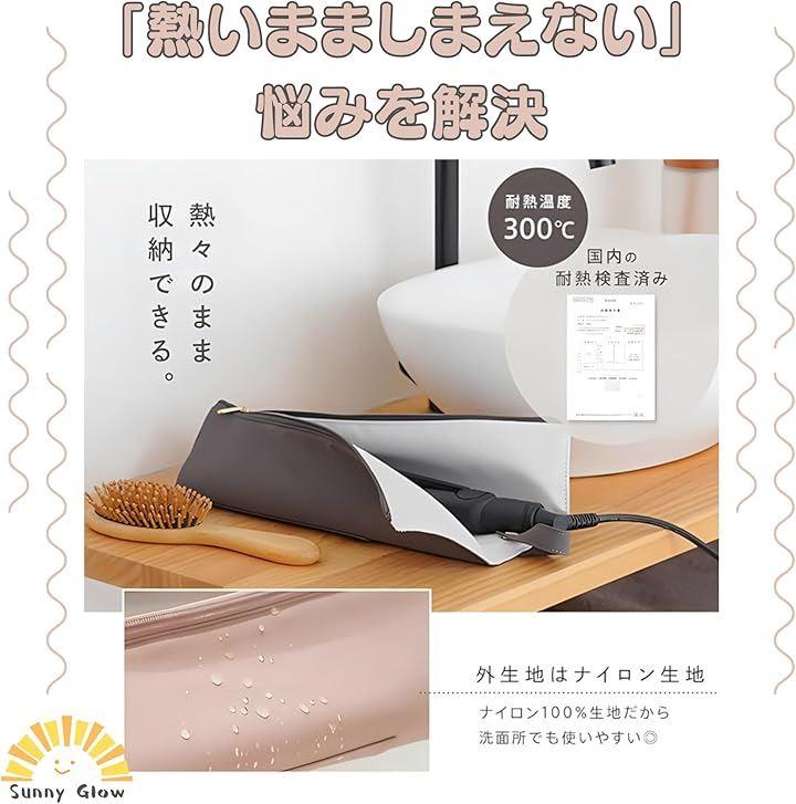」ファスナーを開くだけでそのままヘアアイロン置きとして使用でき、忙しい朝やお出かけ前でもスムーズに使えます。