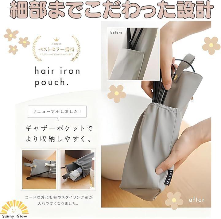 」ファスナーを開くだけでそのままヘアアイロン置きとして使用でき、忙しい朝やお出かけ前でもスムーズに使えます。