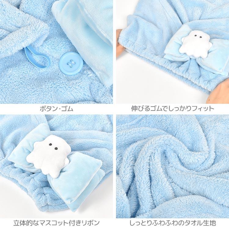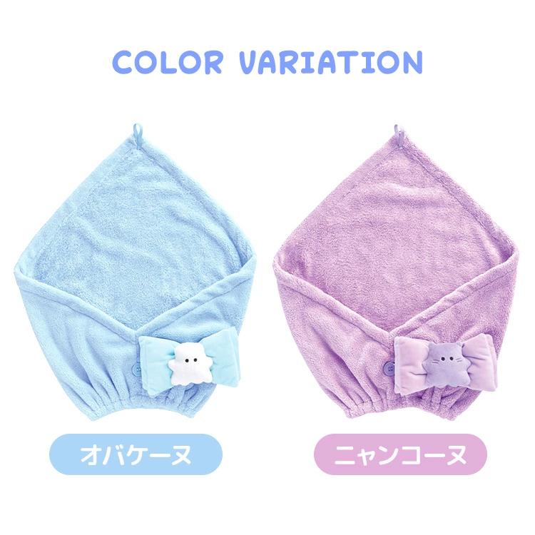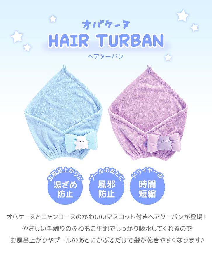 【ヘアターバン】かぶるだけで髪が乾きやすくなる、吸水・速乾性に優れたマイクロファイバー素材のヘアターバンが登場!オバケーヌとニャンコーヌのかわいいマスコットの大きなリボンが付いているので前後がわかりやすく、小さなお子様も自分でかぶりやすいデザインです。優しい手ざわりのふわもこ生地で付け心地も抜群◎海やプール、お風呂上がりなどに大活躍間違いなしです♪