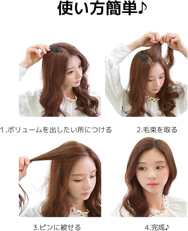 「使い方簡単」 (1) 髪の一部を持ち上げる (2) インサートピンを下に差し込む (3) 髪をかぶせて整えるだけ。 他のピンやスプレーは不要で、初心者でも簡単にふわっとしたトップヘアが作れます。