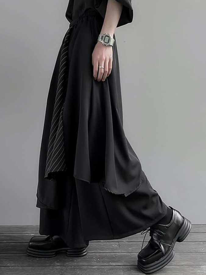 スカートのように見えるレイヤード構造で、立体的な袴風シルエットを演出します。