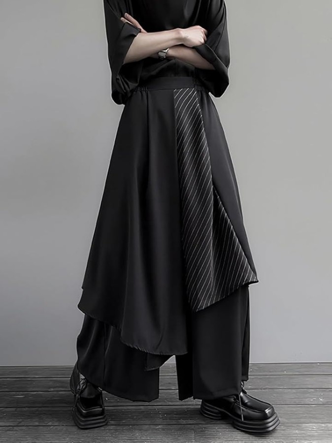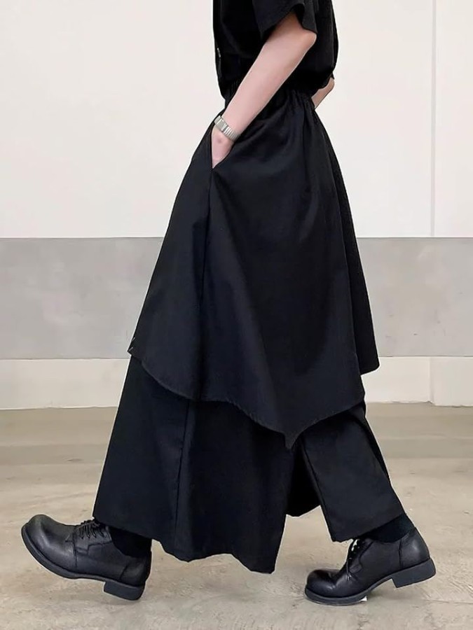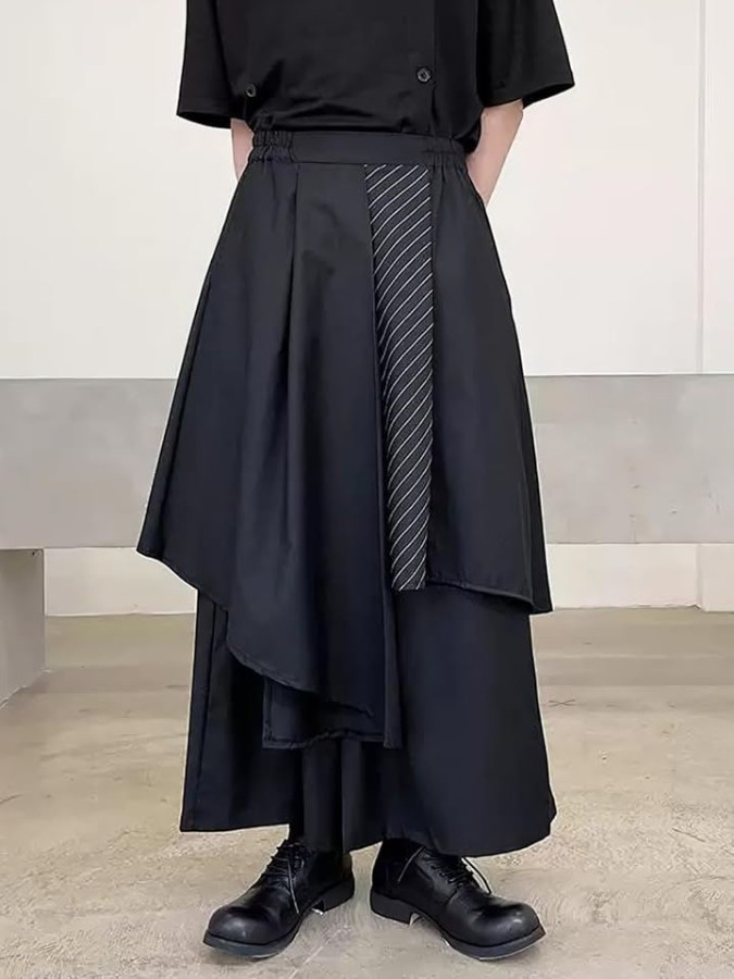 Hakama-style wide-leg pants, loose fit, oversized, 9/10 length, front wrap, front panel, samurai style, for men, spring, summer, autumn, winter, asymmetrical design, skirt-like silhouette, mode style, oversized, big.