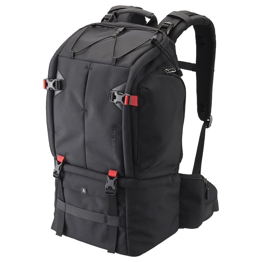 望遠レンズを装着した一眼カメラを収納できる、上下2気室構造の大容量バックパック■多数の交換レンズ、アクセサリー等を上下に分けて収納できる大容量設計。背面には13インチ相当のノートPCの収納が可能。■上下の仕切りは円形に貫通可能な構造で、下段に貫通させることで200-500mmクラスのレンズを装着した一眼カメラの収納も可能。■バッグを立てた状態で、天面からカメラにアクセスすることが可能。開きすぎや盗難を抑制するための開き止めバックルを装備。■撥水性のある高強度のポリエステル素材を採用。底面は防汚性と防水性に優れたターポリン素材、直接地面に接しない底脚付き。■各開閉部には通常のコイルファスナーよりも耐摩耗性に優れ壊れにくい、YKKの織り込みファスナーを採用。■上段はバンジーコードで、下段はベルトでウェアなどの荷物を固定することが可能。※上段は軽量物のみ可。■体にフィットするエルゴノミクスカーブ形状のショルダーハーネスや、チェストベルト、ウエストベルトで快適に携行が可能。■ハーネス上部には、「HAKUBA くびの負担がZEROフック」(別売り)を装着可能。■ウエストベルトのパッド部には便利な小物収納用のファスナーポケットと、ボトル収納用のファスナーポケットを装備。