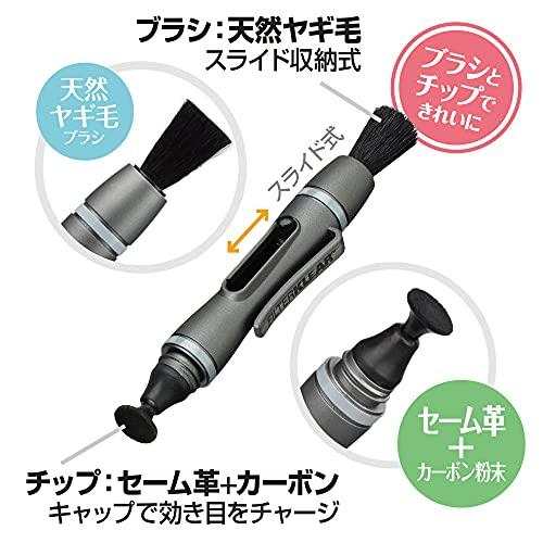 カーボン粉末とセーム革チップで指紋を拭き取る人気のレンズペン。セーム革製チップ+カーボン粉末(特許)で指紋や皮脂を残さず確実に吸収し、さらに静電気を除去してホコリをつきにくくします。