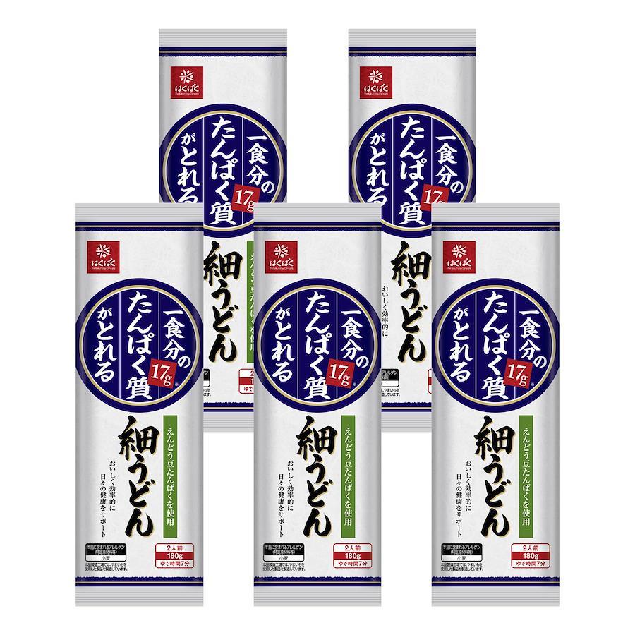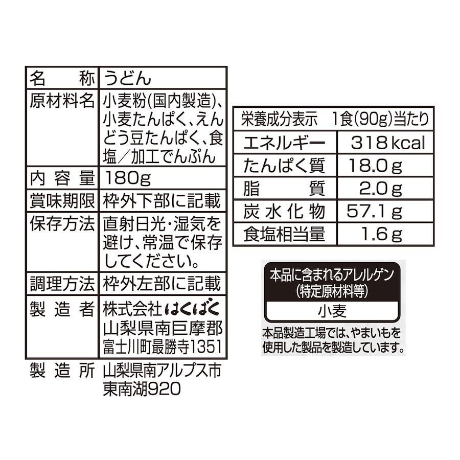 いつものうどんと変わらない美味しさで、成人女性に必要な一食分のたんぱく質が摂れる細うどんです。麺には、質が良く低アレルゲンの植物性たんぱく質である「 えんどう豆たんぱく 」が練りこまれています。独特の歯ごたえが特長で、おいしく効率的に日々の健康をサポートできます。栄養成分成分(90g当たり)エネルギー310kcal たんぱく質17.2g 脂質2g 炭水化物55.7g 食塩相当量3.3g