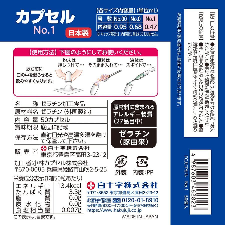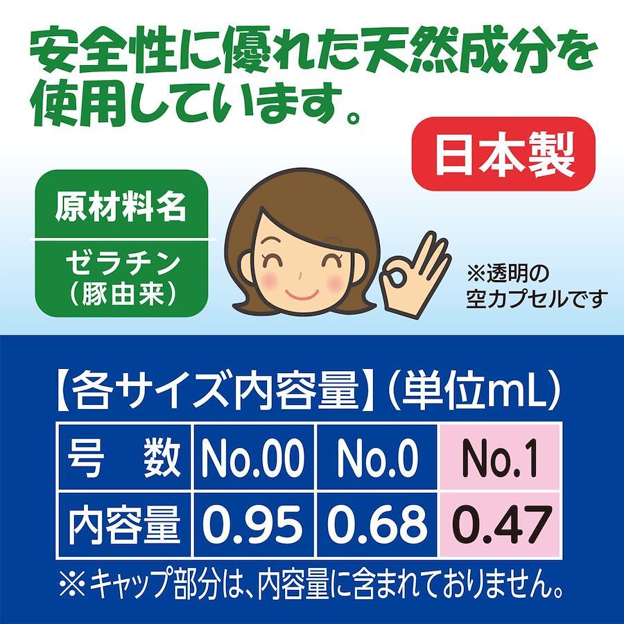 ●飲みにくい液体、顆粒、粉末のものを飲むのに便利な空のカプセルです。●苦くなくにおわず、飲みやすくなります。●内容量:50個入 液体、顆粒、粉末を飲むのに適したカプセルです。 苦くなく、におわないので飲みやすくなります。 安全性に優れた天然成分を使用しています。 ゼラチン加工食品 透明の空カプセルです。 内容量:50個入 容量:0.47ml 原産国:日本