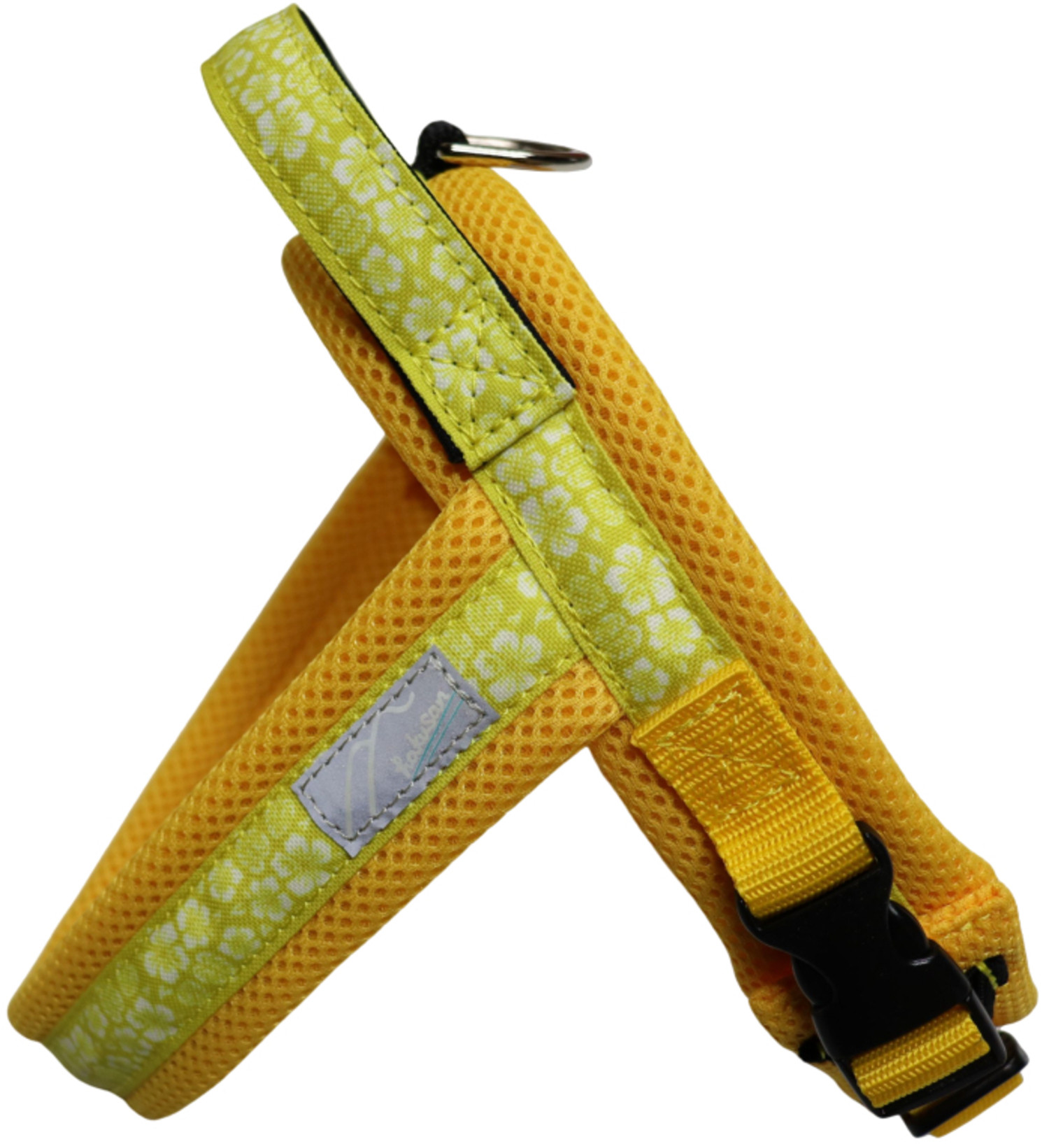 ・New Just Fit Dragon Harness ”Aloha” features a charming tropical design pattern, created by a Swedish designer, in 7 vivid and cheerful color variations.・The unique T-shaped dog harness minimizes pressure on the neck and ensures the best comfort of the dog.・The inner surface is lavishly padded with a high-quality breathable mesh fabric, soft and comfortable to the touch.・Equipped with heavy-duty plastic buckles, a soft and strong handle atop, etc.・With the newly added one-touch buckles on both sides, you can easily put on and take of the harness with no effort (sizes 00, 0, 1 are equipped with single chest buckle).・Carefully manufactured in Japan by expert craftsmen.・Available in 7 colors and 8 sizes.