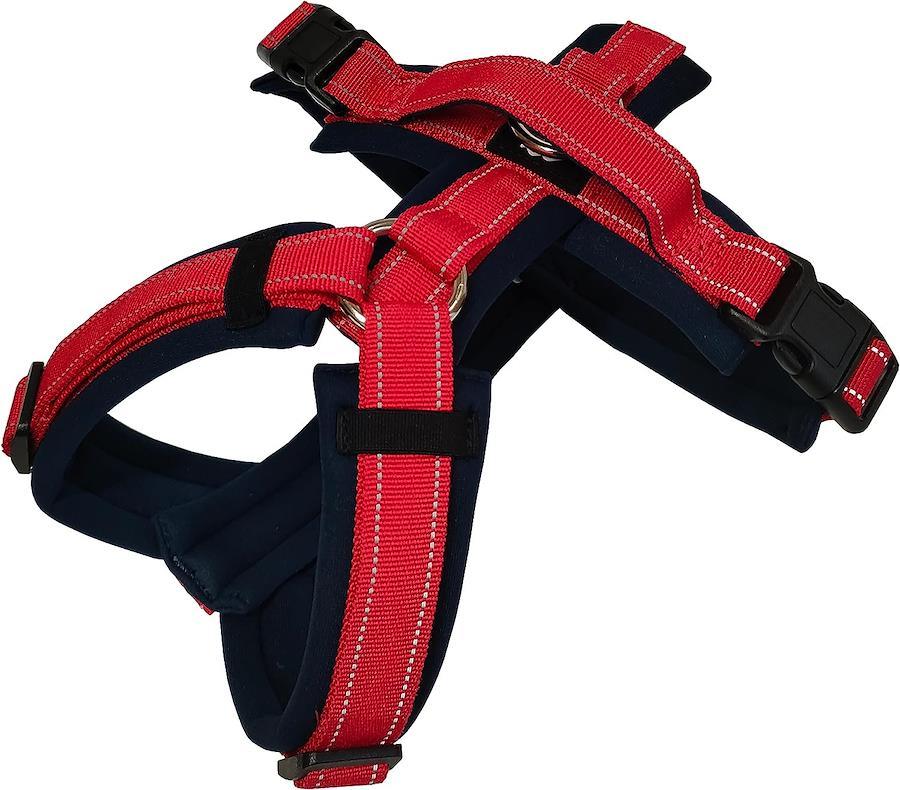 ・The inside is lavishly padded with soft cushion material, ensuring the best wearing comfort of your dog.・The innovative comfort-centered design reduces pulling, strain, constriction or any other pressure on the dog’s neck and trachea and allows the harness to stay in the right position.・Features a high-quality neoprene fabric with fast-drying function.・Adjustable on both neck and chest. Easy to fit on for many breeds.・Easy to attach/detach by using side buckles. No need to lift up the legs.・With a convenient handle. (Tiny,XXS size has no handle)・Available in a wide range of color options: the lineup includes bright, cheerful or dark tones, classical plain colors, various denim designs, and the traditional Japanese arabesque “Karakusa”.