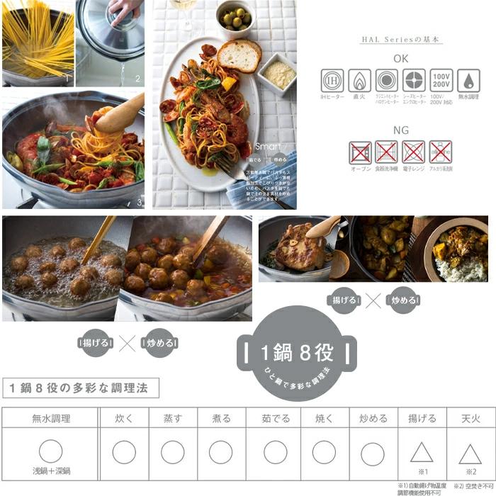 広島が世界に誇るアルミニウム鋳造技術から生まれた、無水鍋の定番シリーズ。素材の水分を引き出す高温調理で、栄養たっぷりのお料理の出来上がり。耐久性にも優れ、1台8役をこなし、幅広い家族構成・年代の方にお使いいただけます。ウォーターシール効果フタと本体のかみ合わせ部分に水蒸気による水の膜が作られ、鍋内部を密封状態にします。1鍋8役ひと鍋で多彩な調理法炒める焼く天火揚げる蒸す炊く茹でる煮る