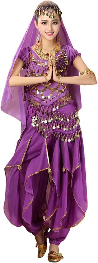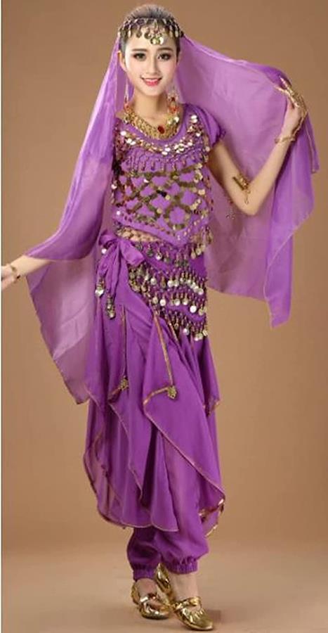 ・アクセサリー付きベール・トップス・アクセサリー付き腰巻スカーフ・パンツスカートの4点セットです。