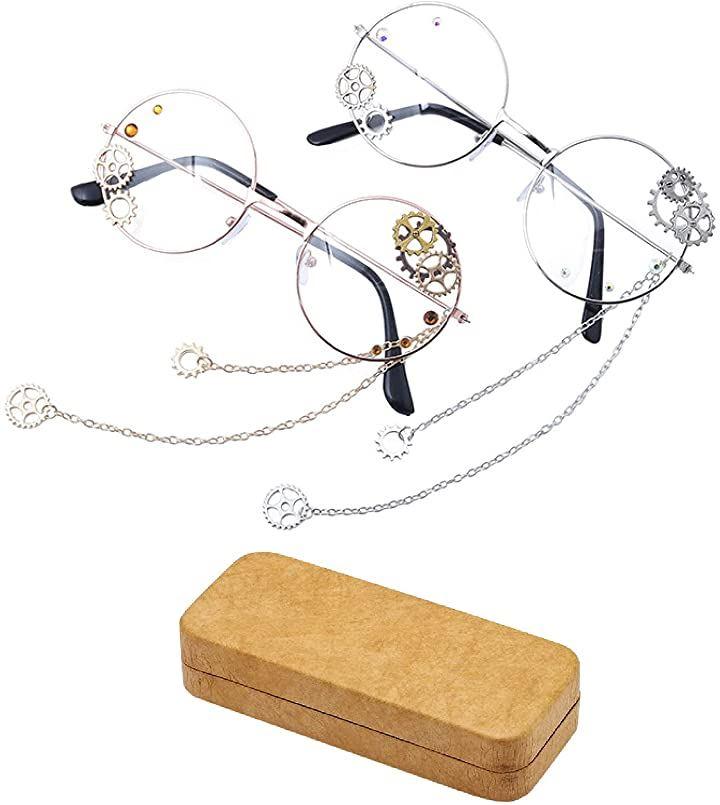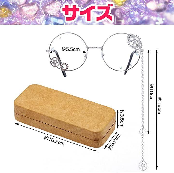 歯車デコメガネ、メタル、シルバー、ゴールド、ケース。