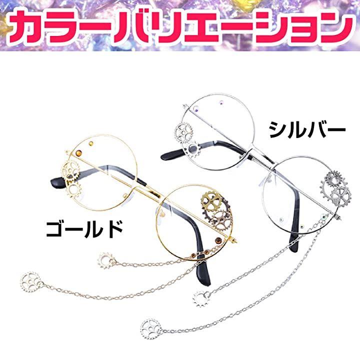 Famimuenoハロウィンデコ眼鏡メガネロリータゴスかわいい目飾り仮装歯車めがね(金色、銀色セット)