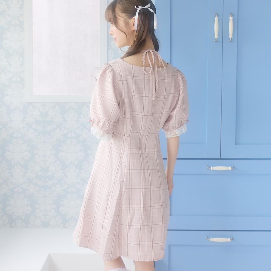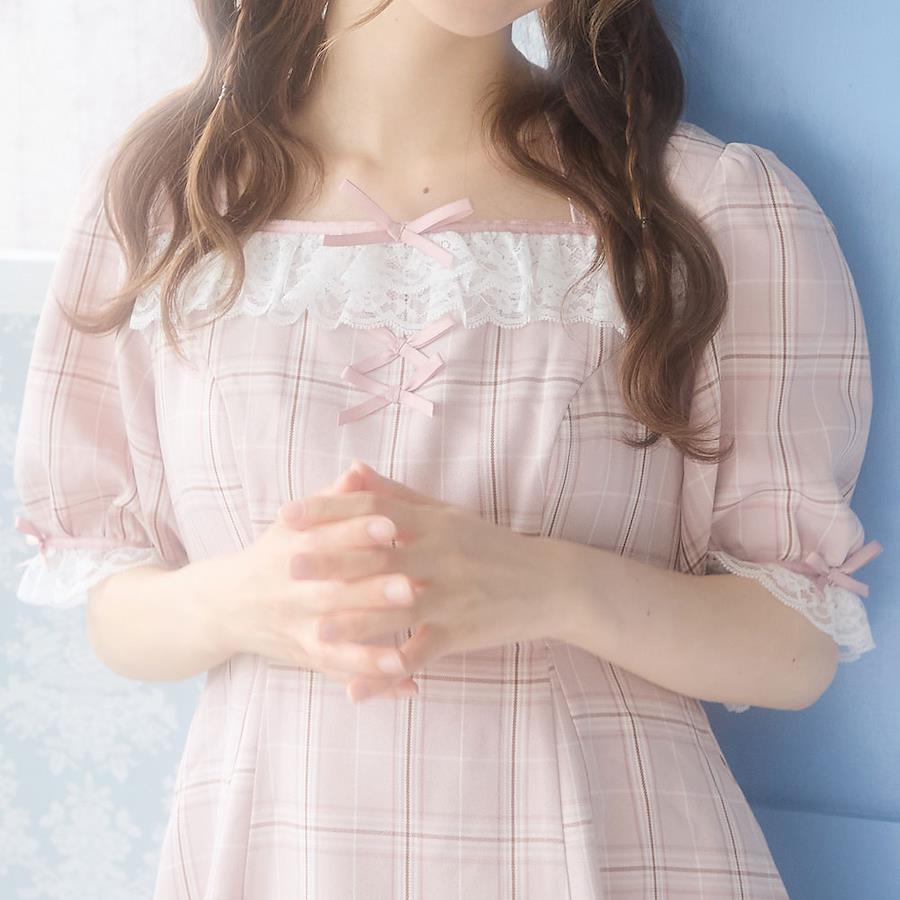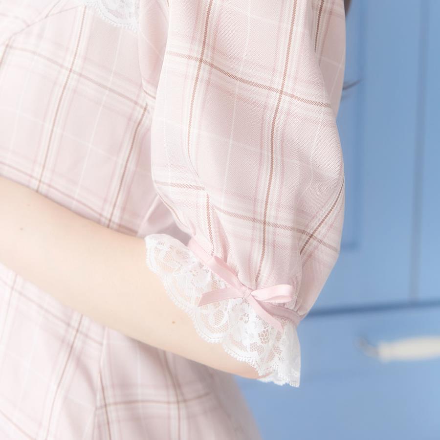 胸元と袖口にたっぷりレースをあしらい、上品でロマンティックな印象をプラス。