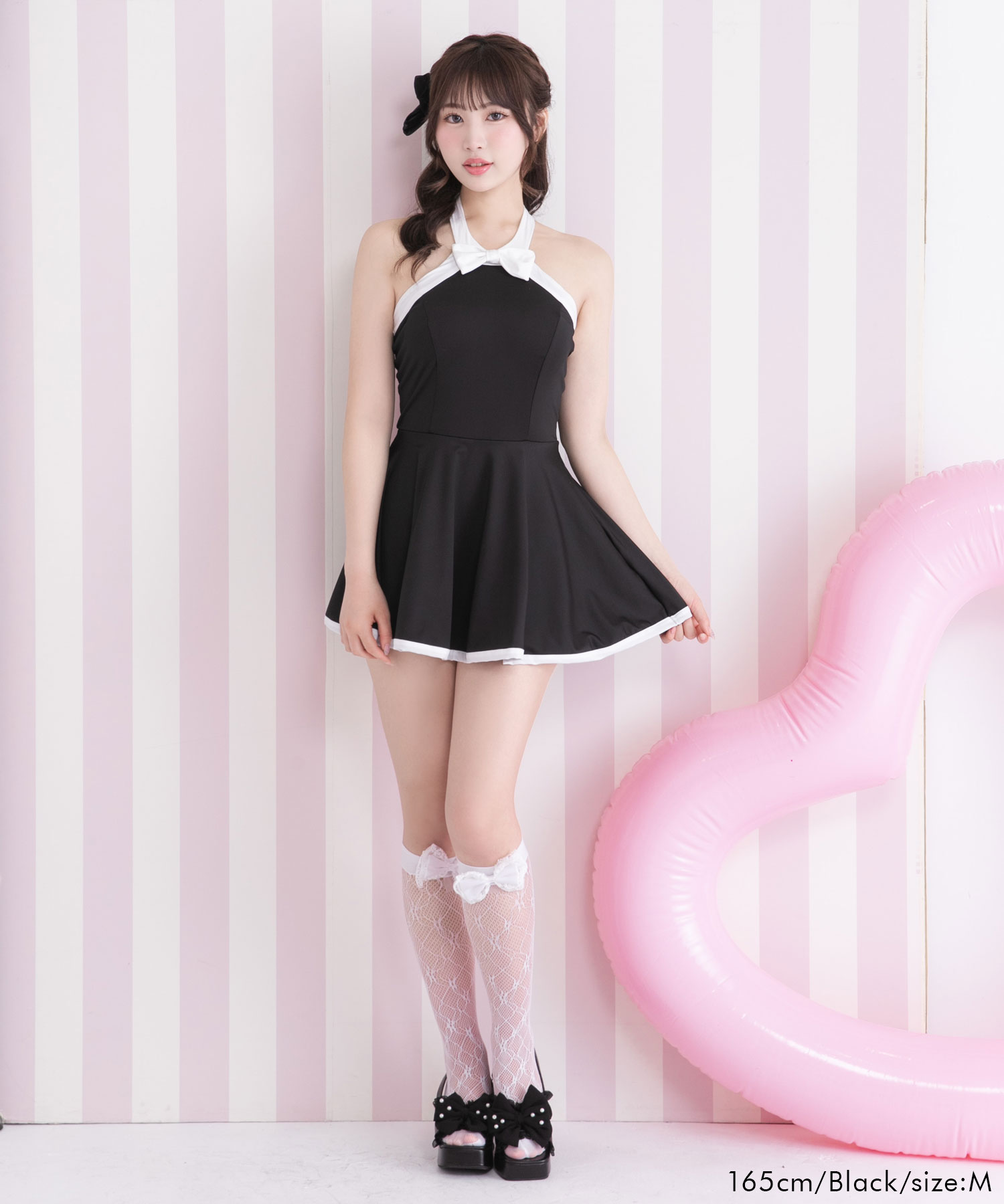 ホルターネックは首後ろでスナップボタンを留める仕様で、2段階の調整が可能◎