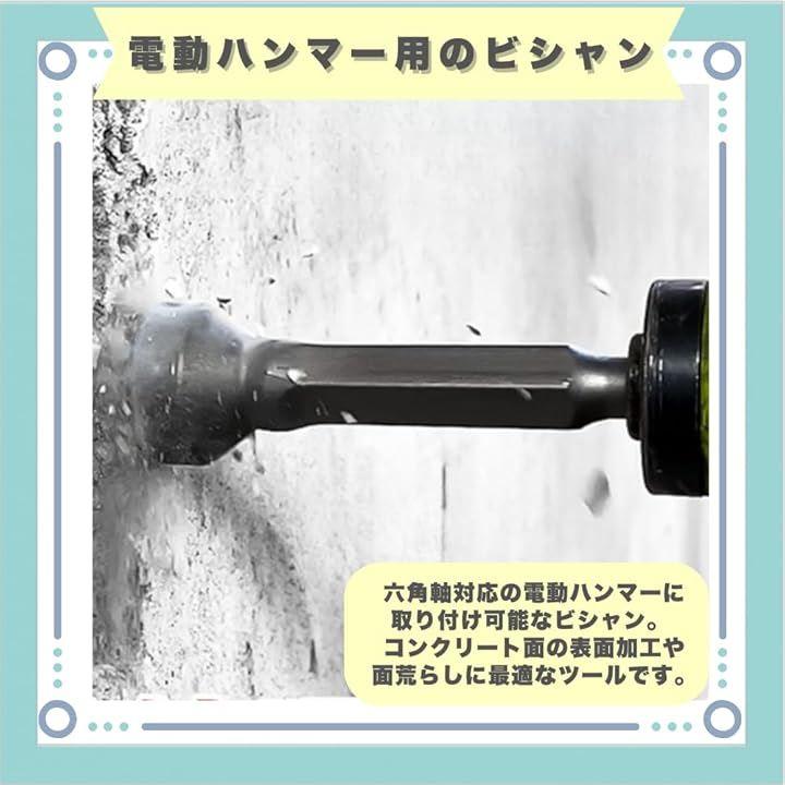 「電動ハンマー用のビシャン」六角軸対応の電動ハンマーに取り付け可能なビシャン。