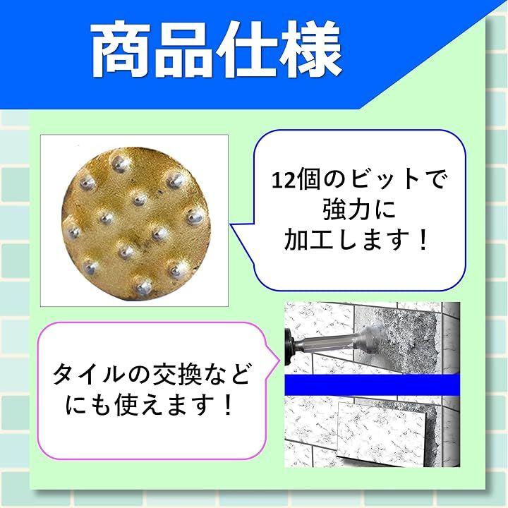 「12歯ヘッドで効率加工」12歯構造により、コンクリート・石材の表面処理や面荒らし・ざらつき仕上げを均一に行える設計。