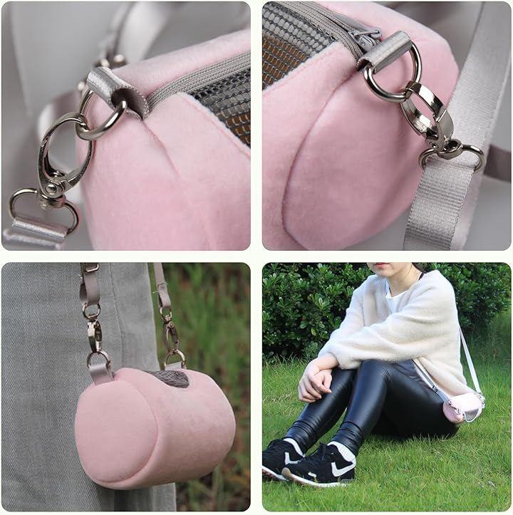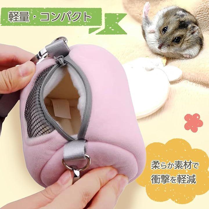 「商品内容」ハムスター用 キャリーバッグ(外出用)「カラー」ピンク/グレー「サイズ」約13x8x8cm「素材」ベロア調素材「内容」ショルダーストラップ付き(約115cm)/重量:約50g *製造ロットにより色味に若干の差が生じる場合があります。