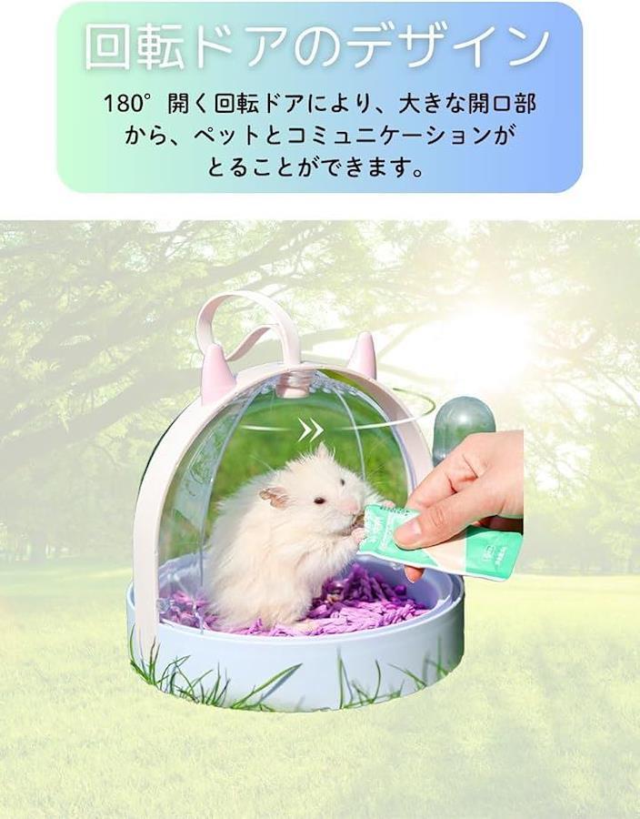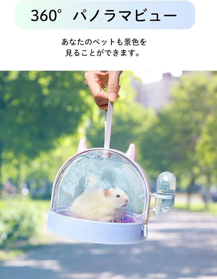 この小動物用ハムスターキャリーケースには60ml水ボトルが装備されており、給水器がついていますので、長時間の外出でも安心です。