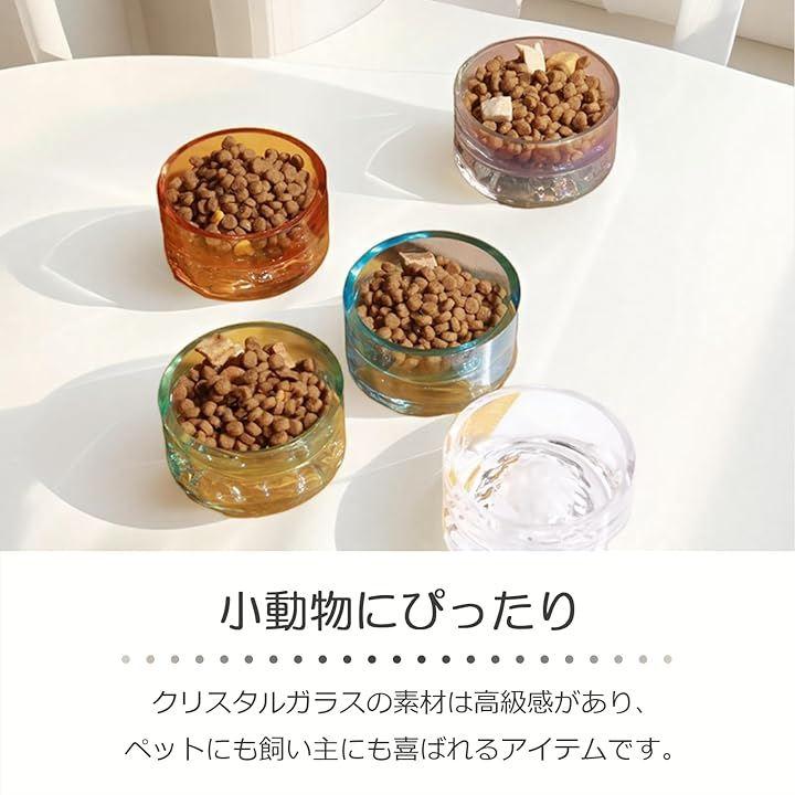 「シンプルで美しい」 クリスタルガラス製の餌入れと水入れは、シンプルで美しいデザインが特徴です。
