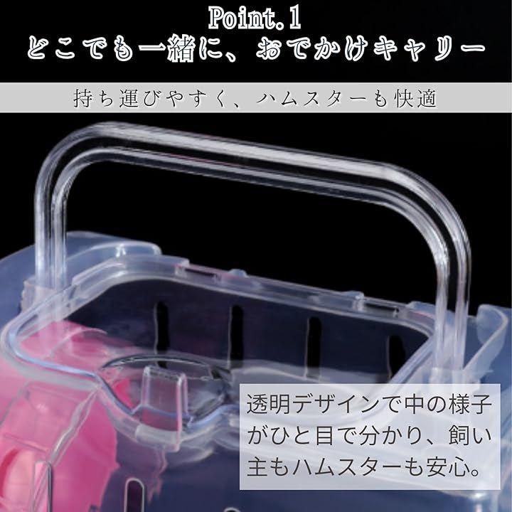 「持ち運びやすく、ハムスターも快適」幅広で持ちやすいハンドルが付いているため、安定して持ち運べ、ハムスターに揺れによるストレスを与えにくい設計です。