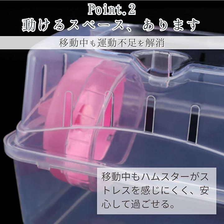 「移動中も運動不足を解消」ケージ内に回し車が設置されているため、移動中でもハムスターが好きな時に運動できます。