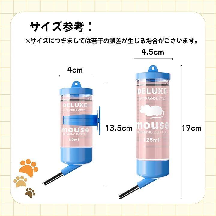 「コンパクトサイズ」80ml/125ml2種類のコンパクトなサイズは、小動物のケージにぴったりフィットし、スペースを有効活用できます。