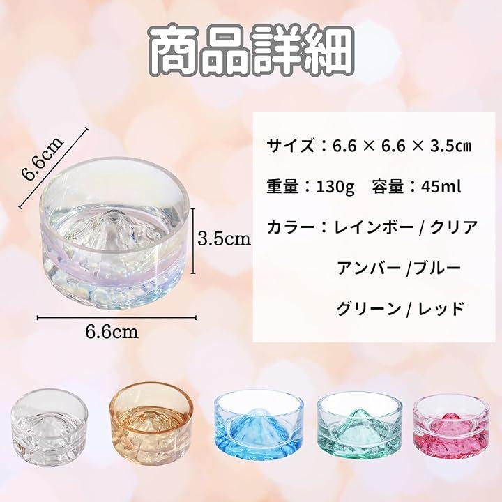 「商品詳細」サイズ:6.6 x 6.6 x 3.5cm 重量:130g 容量:45ml カラー:レインボー / クリア / アンバー / ブルー / グリーン / レッド