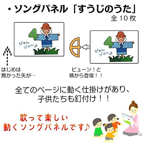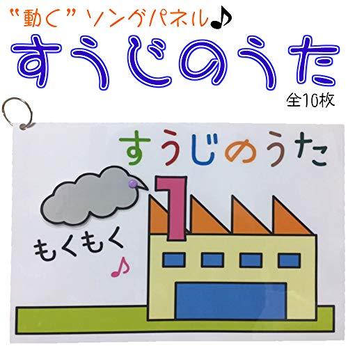 歌って楽しむ パネルソング 【すうじのうた】 全10枚 A4サイズ 子供たちが大好きな すうじのうた ? 楽しく歌いながらすうじに触れることで小さなお子様でもすぐに覚えてしまいます。全てのページに動く仕掛けがあり 興味津々でワクワク? 次はどこが動くかな? 演じる方が歌いながら動くパーツを動かして下さい。 リングで止めてある為、並べなおしたりバラバラになることもありません。お誕生日会、お楽しみ会等さまざまな行事の隙間時間にもすぐに楽しめます。いつでも サッと始められ片付けも簡単です。 すうじの4の弓矢は他のページの動くパーツ位置と違い、弓矢が裏面に付いており、飛び出す仕組みです。また、こちらの商品には歌詞や楽譜等は付きません。ご了承ください。 動くパーツには割品が使用されております。小さなお子様が触る際には、充分に気を付けてください。