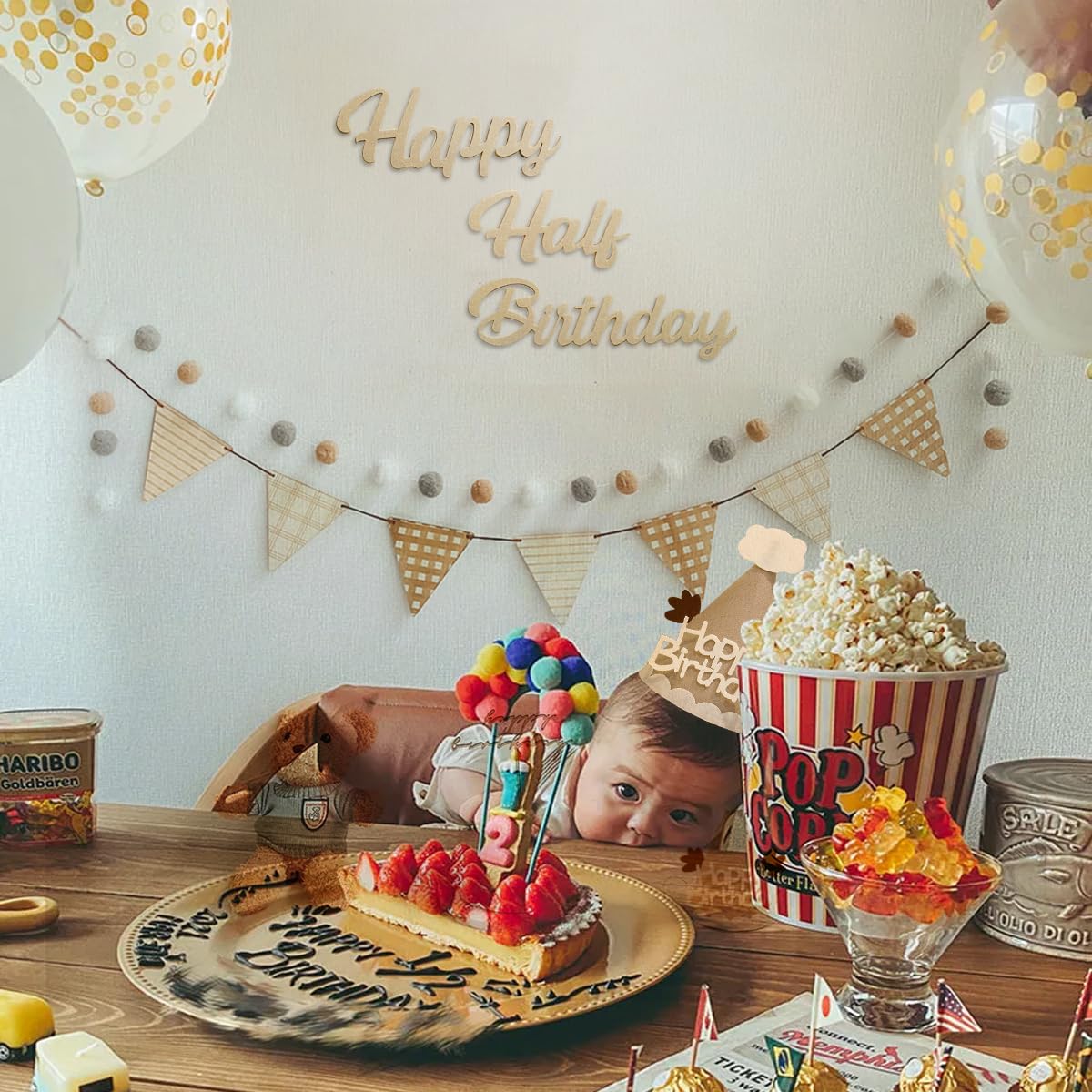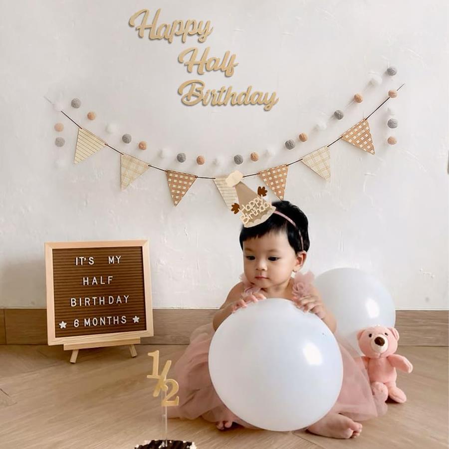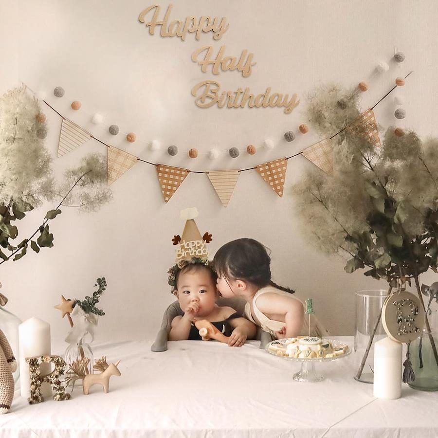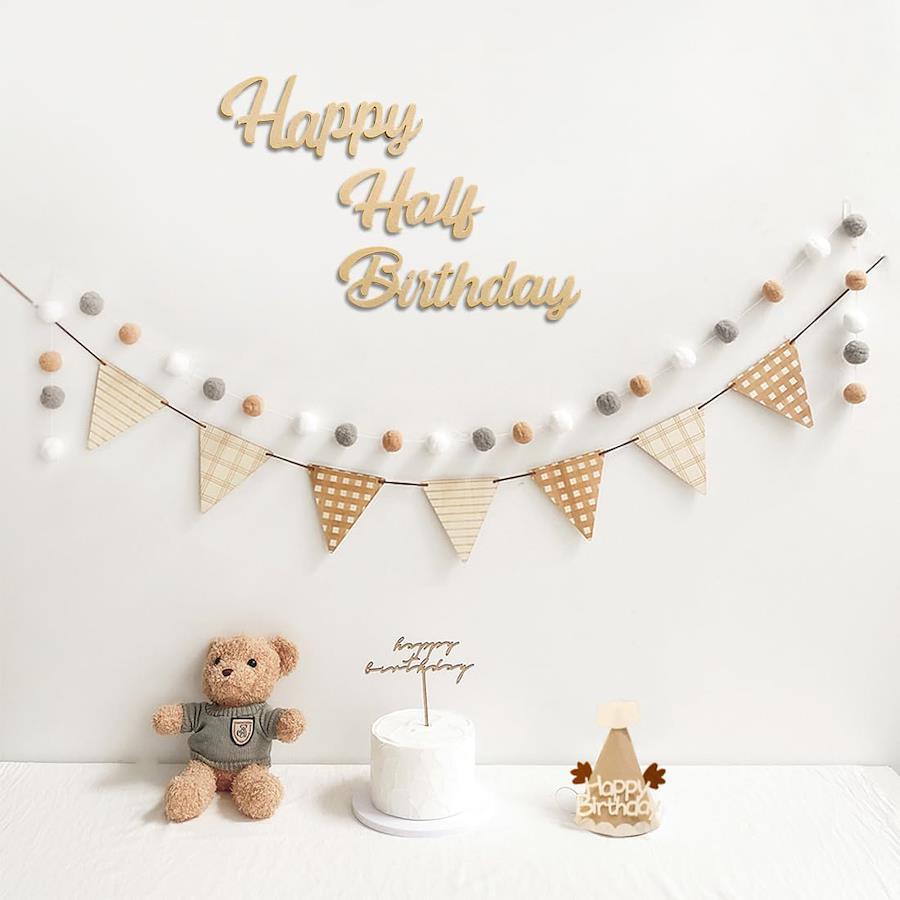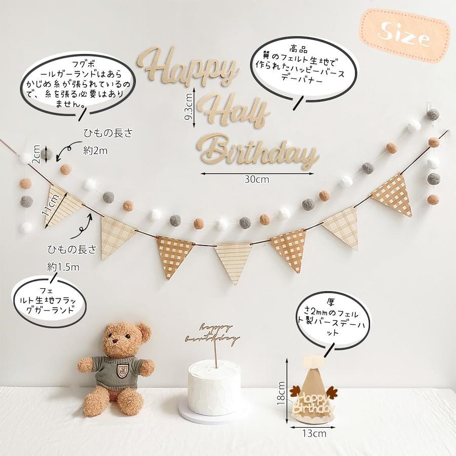 Hanakaze ハーフバースデー 誕生日 飾り付け フェルト生地 1/2歳 誕生日 飾り セット シンプル おしゃれ バースデー 飾り 女の子 男の子 happy half birthday ガーランド、ケーキトッパー、フラッグガーランド、フグボールガーランド 誕生日 ウォールステッカー 写真背景 お食い初め 飾り Half Birthday Party Decorations