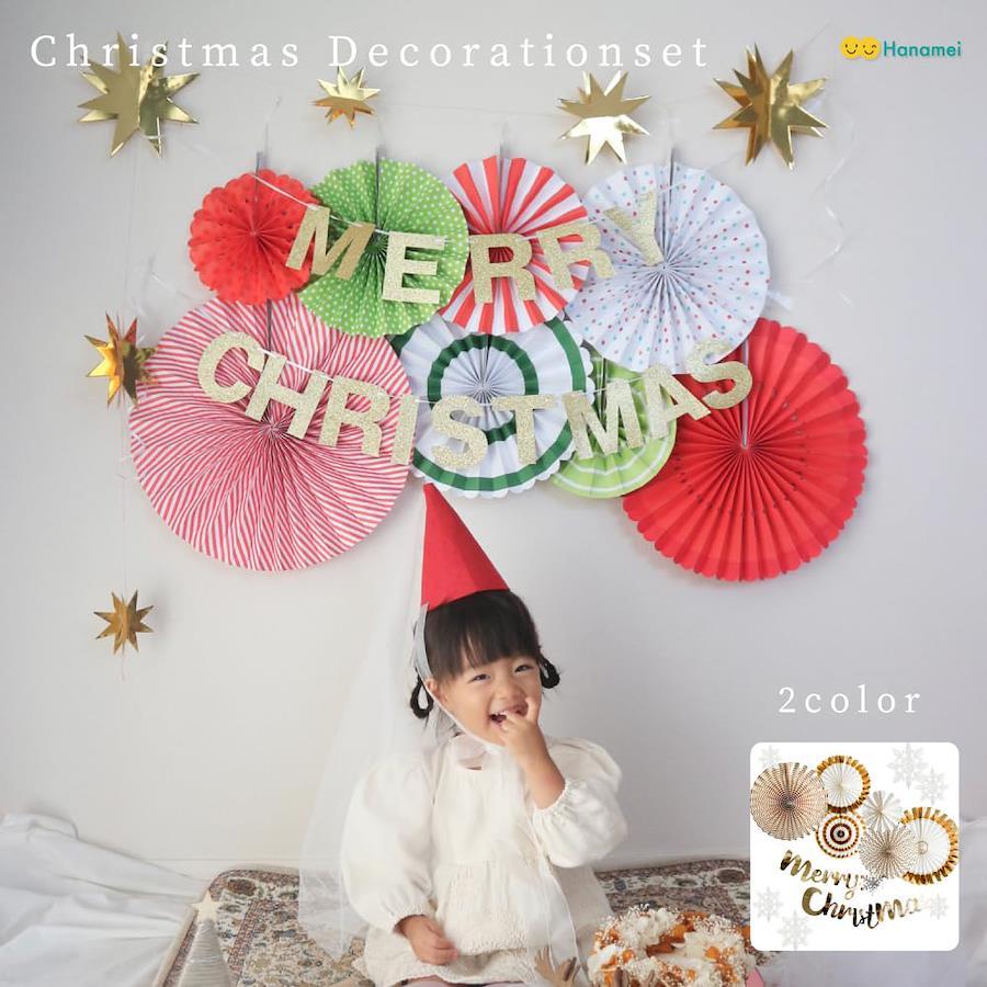 【大人気!デコレーションセット】お待たせいたしました! 今年もHanameiオリジナルクリスマスデコレーションセットの登場? クリスマスらしいポップなカラーで華やかさが増したおすすめのセットです。 「忙しい」「飾り付けに自信がない」「組み合わせがわからない」 そんな方にもおすすめ!自分で色々買い揃えなくても 流行のスタイルが手に入るデコレーションセット。??お家クリスマスの装飾を楽しみたい?イベントやパーティーを盛り上げたい?お店の飾り付け 様々なクリスマスシーンでご活用頂けます! 【セット内容】 ・ペーパーファン(8本):XLサイズ(約40cm)2本 / Lサイズ(約30cm)2本/ Mサイズ(約25cm)2本/ S サイズ(約20cm)2本・Merry Christmas ガーランド ・スターオーナメント(ゴールド) 1本 ・ご自宅の壁などに貼り付ける場合は、養生テープな等のしっかりとした接着素材をお勧めいたしますが、壁の種類によっては商品の重みで剥がれやすくなる場合がございますので、予めご了承ください。 ・こちらは海外製の商品になります。お写真に残す上で問題ない程度の折れ,破れ,接着剤のはみ出痕などがある場合がございます。海外製の特徴としてあらかじめご了承くださいませ。