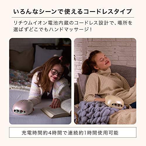 通常1-5営業日で発送:■リチウムイオン電池内蔵のコードレス設計で、場所を選ばずどこでも使えます。■指を1本ずつ包むグローブ型ハンドマッサージャー15層のエアバッグで、手のひらはもちろん指の一本一本まで、エアの力でもみ出しマッサージ。■じんわりあったかヒーター付き。ホットマッサージでもっと気持ちよく。■選べる2つのコース手を包みもむ「全体コース」=手のひら全体を包み込みながら、コリのポイントをしっかり指圧するモード。指を押しもむ「指先コース」=指をとらえ、1本ずつ伸ばし&ひっぱる手技を再現したモード。■簡単操作ボタンでコース選択・強さ設定・ヒーターON/OFFを選択できます。■約10分で自動停止する安心・安全設計。■かわいいフェイスシール付き。自由にデコって使えます。あんま、マッサージの代用・一般家庭で使用すること血行促進、疲労回復、筋肉の疲れをとる、コリをほぐす、神経痛・筋肉痛の緩解