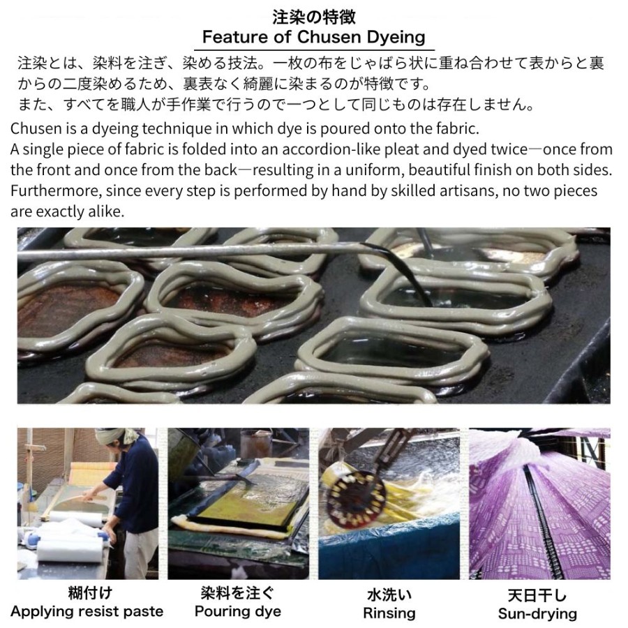 職人の手作業で丁寧に染められた唯一無二の手ぬぐい気温・湿度により染め上がりの色が変わってしまう繊細な染物は、使い方によっても色落ちやほつれも手ぬぐいの良いところ