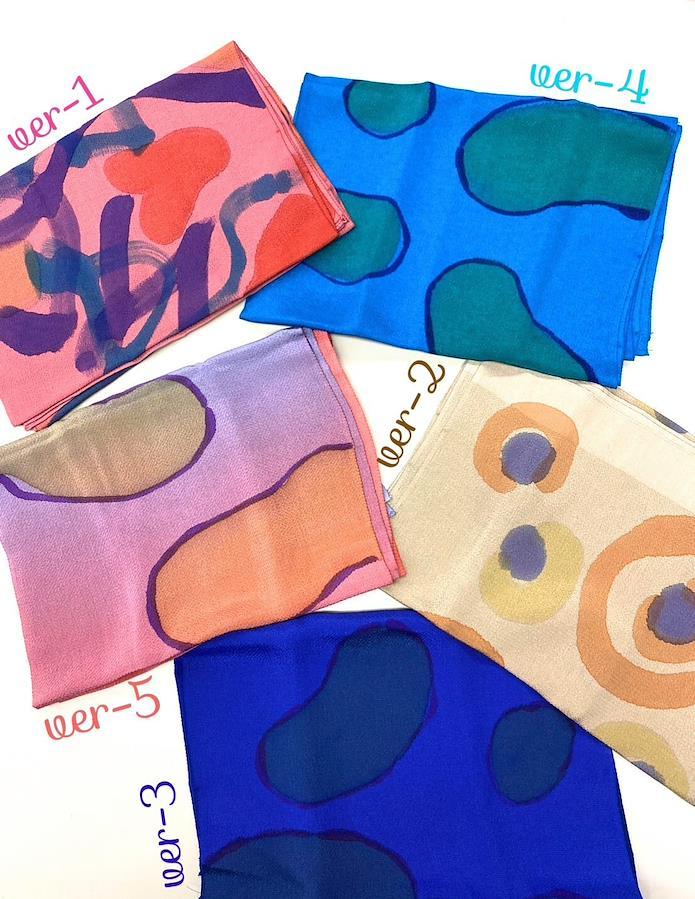 機械での大量生産が主流となった今でも、一枚一枚丁寧に魂を込めて染め続けている作品の1つです。そのデザインはまさに石山氏の魂そのもの。下書きも何もせずに想いのまま筆を走らせたのがこの作品。一枚一枚描かれているため、まさに唯一無二の作品になっています。