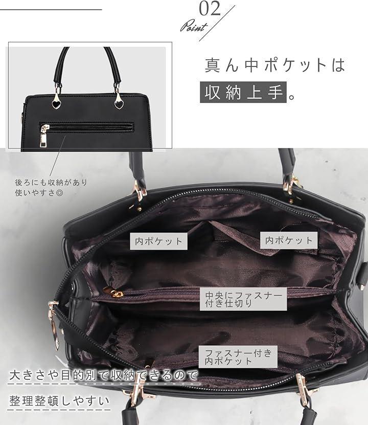 「ハンドバッグ・ショルダーバッグの2way仕様」取り外し可能なショルダーストラップが付いているので、ハンドバッグとしてだけでなく、ショルダーバッグ・斜め掛けバッグとしても使えます。