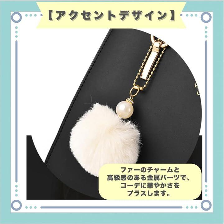 「アクセントデザイン」ファーのチャームと高級感のある金属パーツで、コーデに華やかさをプラスします。
