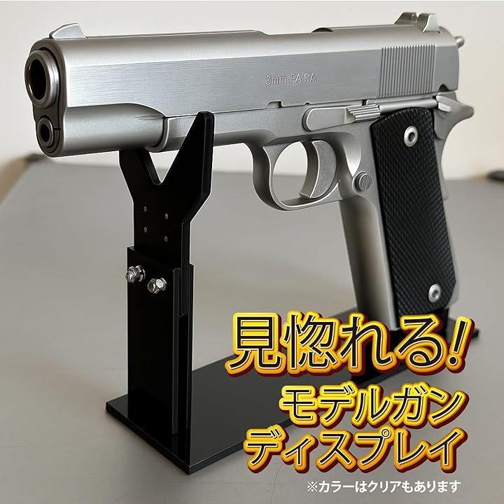 「モデルガンに見惚れる、美しくディスプレイ」このモデルガンスタンドは、ハンドガンやモデルガンを安全かつ美しくディスプレイできるシンプルなデザインが魅力です。
