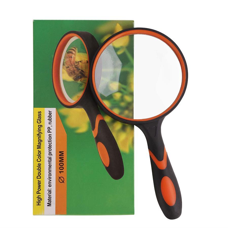 Handheld magnifying glass, 5x magnifying glass, easy to see for the elderly, stylish, reading magnifying glass, large magnifying glass, telescope, 100mm diameter