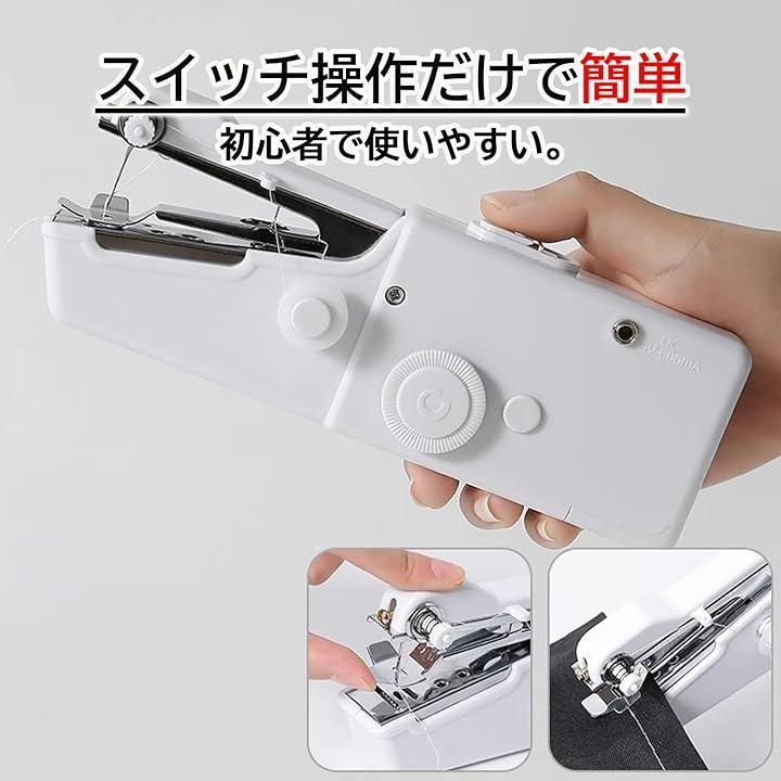 単三電池またはUSB給電の2WAY電源に対応した小型ハンディミシンです。