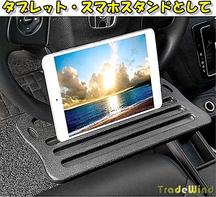 「車内での書類作成に」空き時間にちょっとした書類作業を行いたい時にもハンドルテーブルがあると便利です。