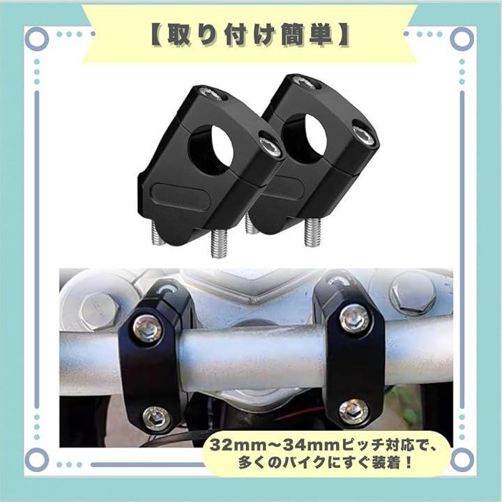 「取り付け簡単」32mm~34mmピッチ対応で、多くのバイクにすぐ装着。