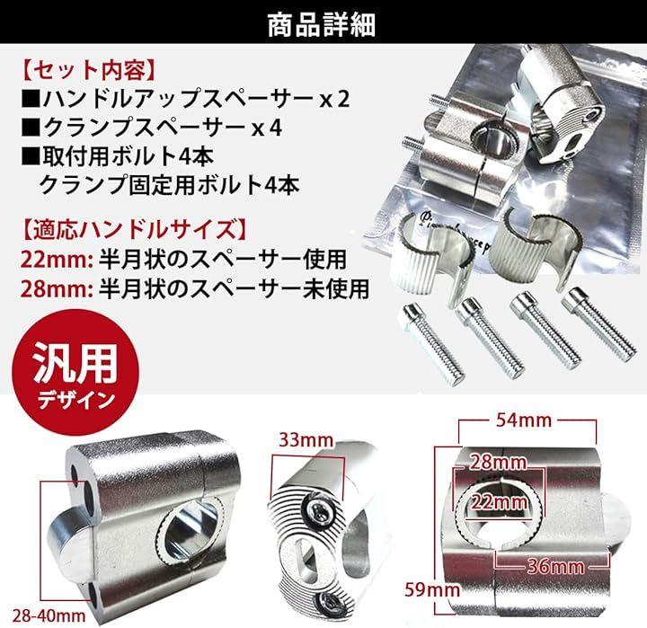「車検対応」いきなりサイズが大きく異なる汎用ハンドルバーに変えたりすると乗車姿勢が変わりすぎて、しっくりこなかったりする可能性があるだけでなく、車検に通らなくなったりブレーキホースやケーブル類も交換する必要に迫られたりして、理想のポジションを得るまで時間的にも金銭的にも遠回りする事になりかねません。