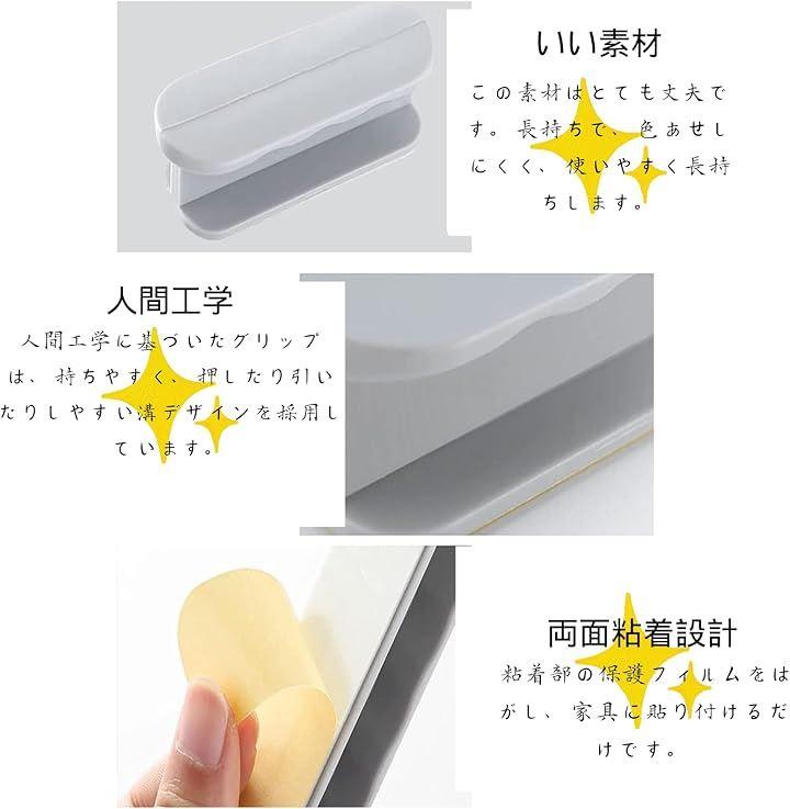 この引き手セットは、4個ずつグレーとホワイトの2色が同梱されています。