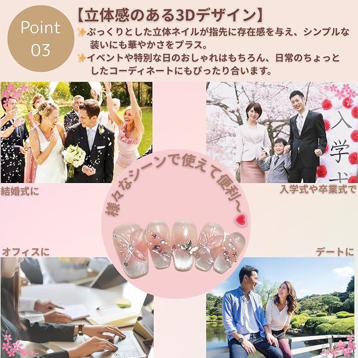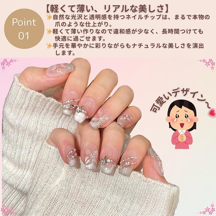 「軽くて薄い、リアルな美しさ」自然な光沢と透明感を持つネイルチップは、まるで本物の爪のような仕上がり。