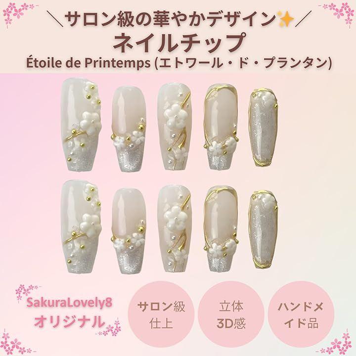 「すべて手作業で仕上げたハンドメイド」 ひとつひとつ丁寧に作られた手作りネイルは、量産品にはない繊細さと立体感が特徴です。