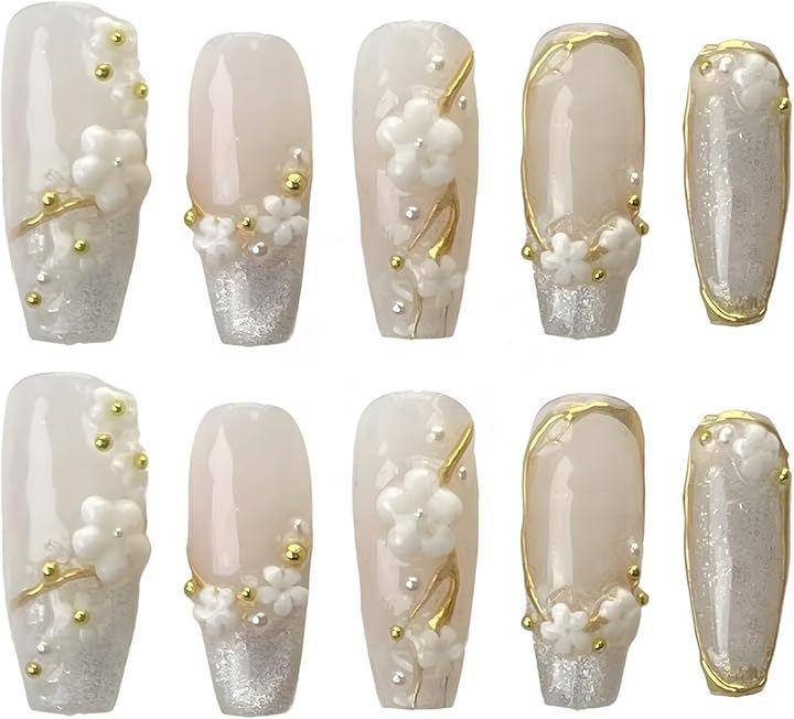 Handmade 3D Design Nail Tips, False Nails, Short, Oval, Stylish, Cute
